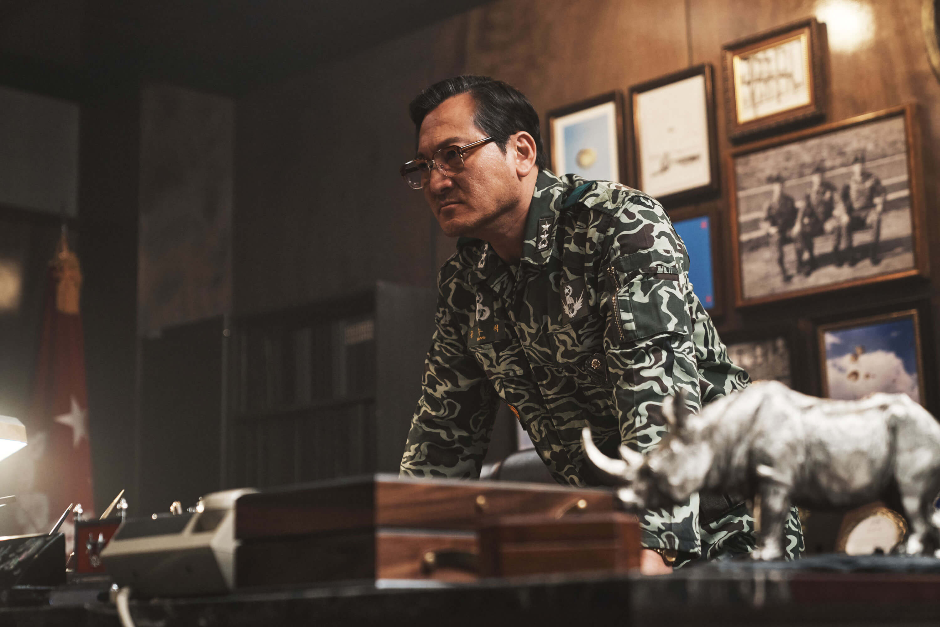 정승화 대장을 모티므로 육군참모총장역 정상호역으로 이성민이 출연했습니다. 정상호 육구참모총장은1979.10.26 사태 이후에 계엄사령관으로 임명되었으나 12.12 군사반란으로 전두광에게 납치되는 위기를 맞게 됩니다.