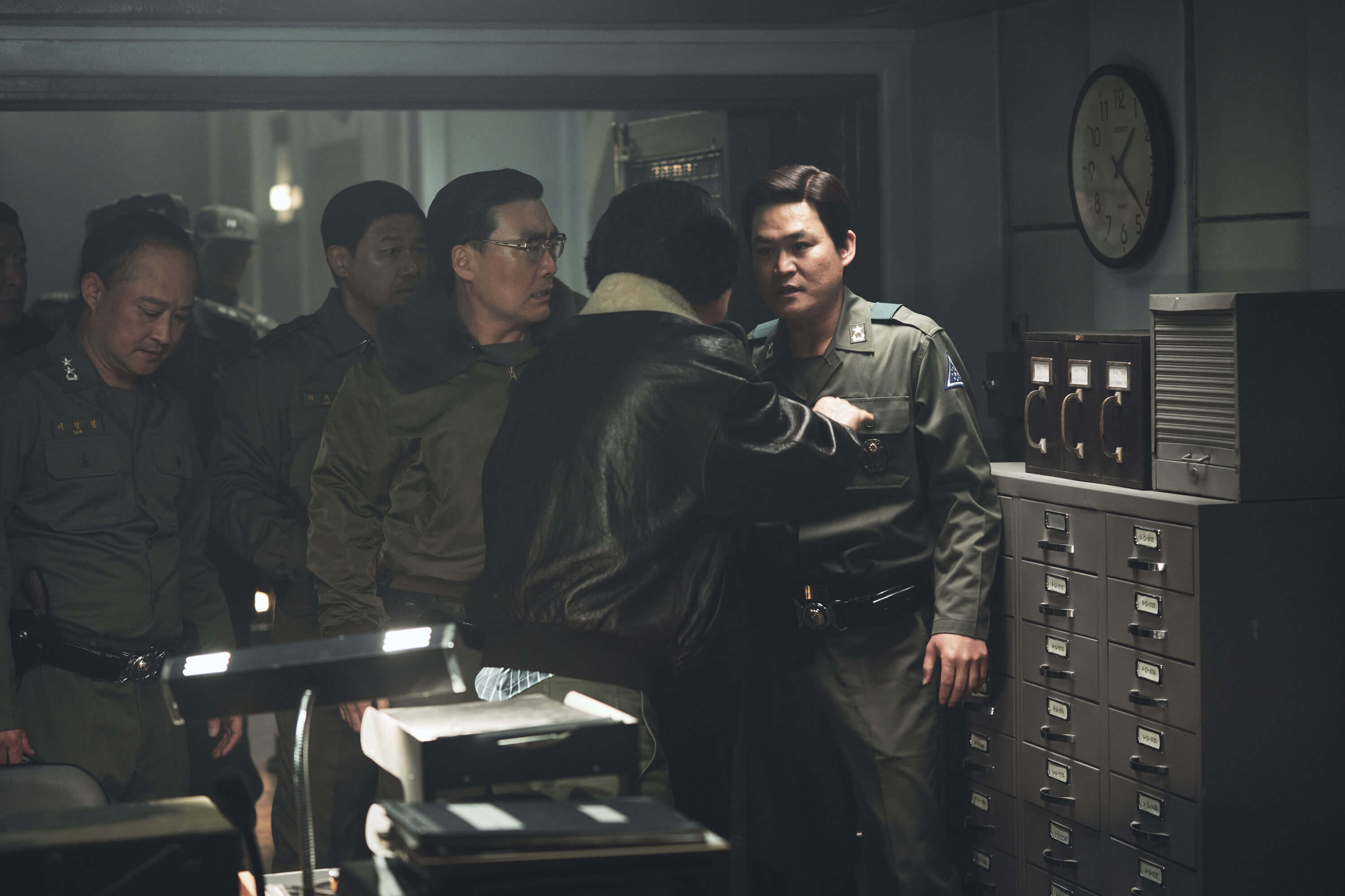 김진기 준장을 모티브로 김준엽역에 김성균이 출연했습니다. 김준엽은 육군본부 헌병감으로 이태신 수도경비사령관과 함께 12.12 군사반란 시 신군부에 맞서 끝까지 싸우는 인물입니다.